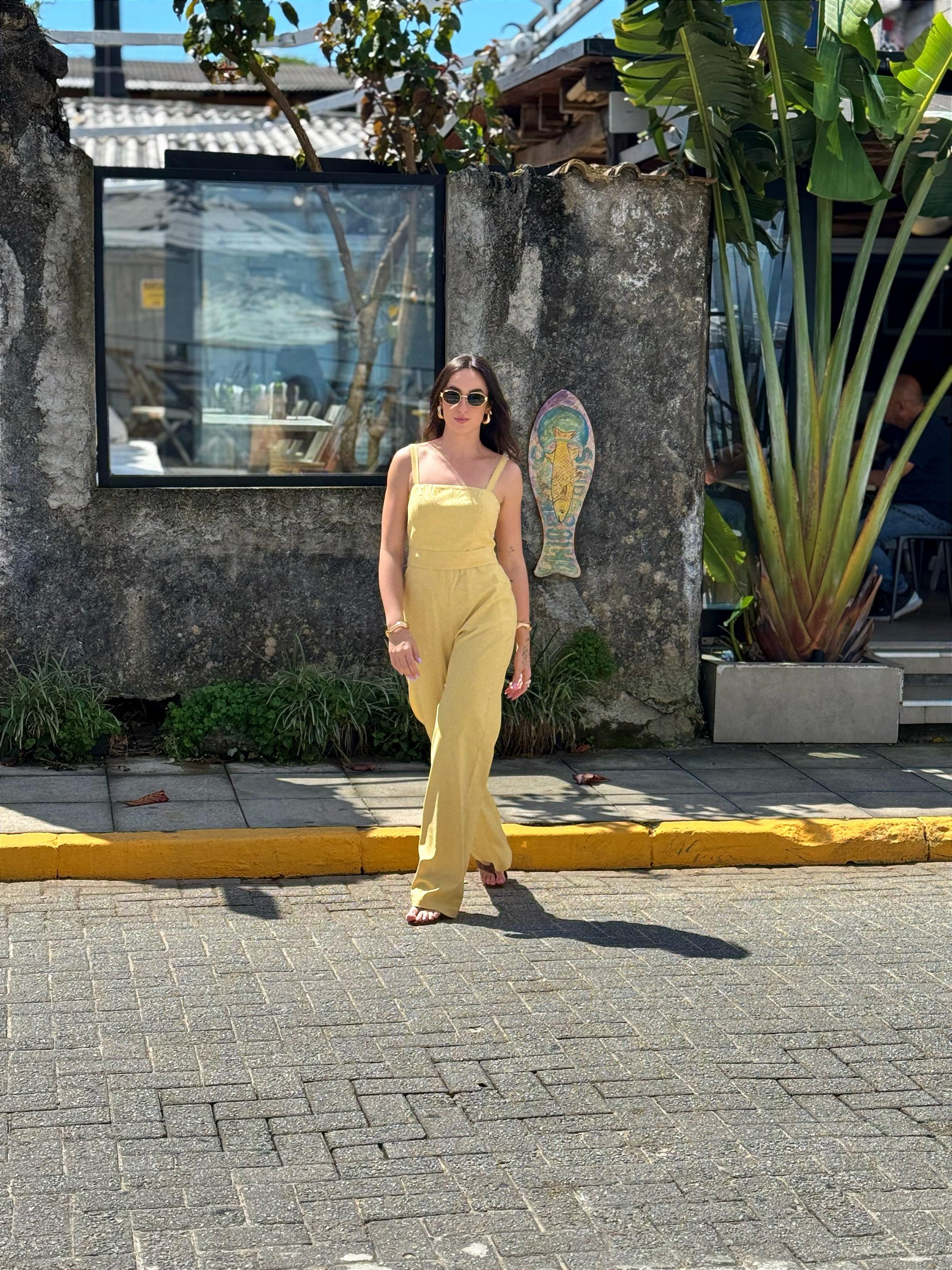 Descubra o macacão em linho que combina elegância e conforto, disponível nos tamanhos P, M e G nas sofisticadas cores preto e gold grass. Este macacão é a escolha perfeita para quem busca um look moderno e versátil, ideal tanto para ocasiões casuais quanto para eventos mais formais.